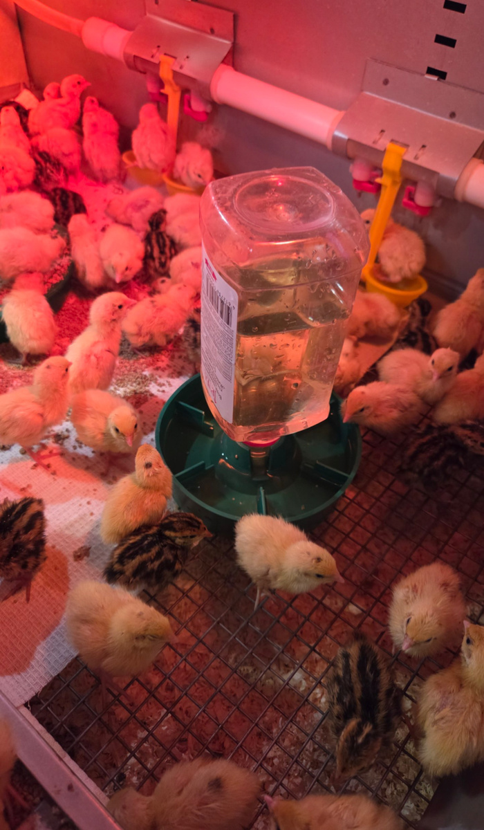 ▪︎ температура в брудере (на уровне грудки цыпы) постепенно снижается (примерно 0.5 градуса в день, но смотрим по цыплятам)