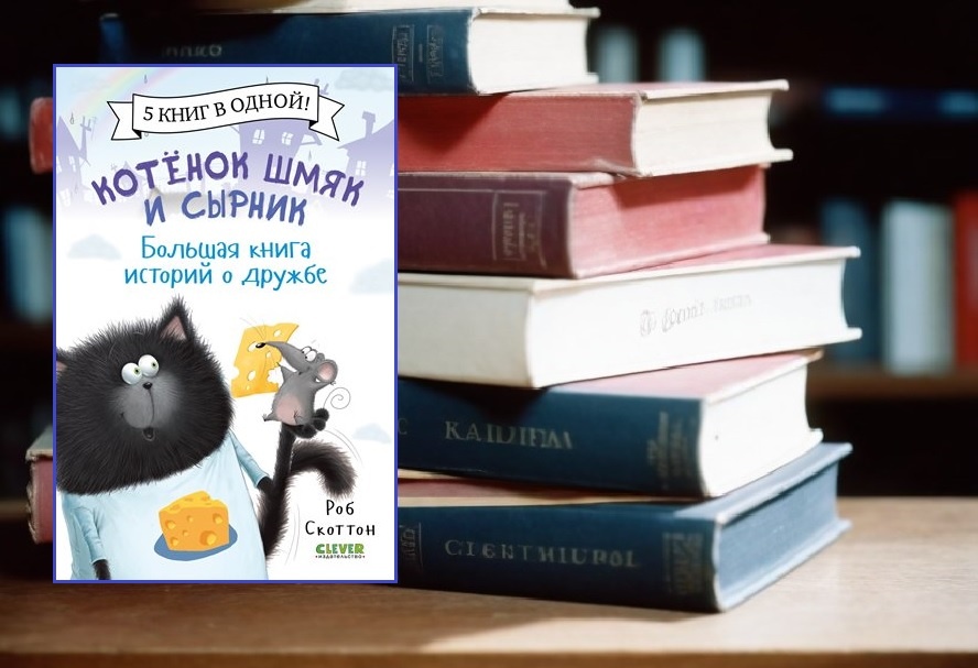 Роб Скоттон «Котёнок Шмяк и Сырник. Большая книга историй о дружбе» Чёрный котёнок Шмяк озорник и выдумщик, но он добрый и заботливый. А ещё он умеет дружить даже с мышами. Именно мышонок Сырник его лучший друг и сопровождает Шмяка во многих его забавах. В большую книгу историй о дружбе вошли: На страницах ярко иллюстрированной книжки Шмяк встречает гостей, развлекается в парке аттракционов, не забыв при этом порадовать кошечку Китти, которая не смогла присоединиться к веселью. Он идёт в скаутский поход и оказывается запасливым и находчивым. И самое главное – Шмяк умеет проявлять лучшие качества, заботясь о младшей сестрёнке, прекрасно соединяя дело, которому время, и потеху, выбрав час. Увы, как и все дети, котёнок бывает проказником и проявляет непослушание. Такова история с роликами. При чтении взрослому стоит объяснить ребёнку, что здесь не так, для начала поинтересовавшись, что об этом думает сам малыш. В книге, созданной по идее Роба Скоттона, тексты написаны Жаклин Ресник, Эми Ш