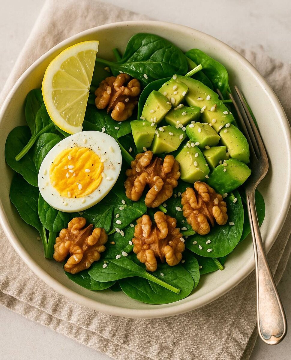 💚 Салат, который полюбит ваша щитовидная железа Этот салат — не просто вкусный, он поддерживает выработку гормонов и помогает щитовидке работать в своём ритме 💚 Ингредиенты: 🥑 авокадо — источник полезных жиров и витамина E; 🥬 горсть свежего шпината — богат магнием и фолатами; 🥚 1 варёное яйцо — содержит тирозин и холин, строительные блоки гормонов; 🌰 горсть грецких орехов — добавляют селен и омега-3; 🍋 сок лимона + 1 ст. л. оливкового масла — улучшают усвоение антиоксидантов; щепотка соли и немного семян кунжута — по вкусу. Как готовить: 1️⃣ Нарежьте авокадо и яйцо, выложите на листья шпината. 2️⃣ Посыпьте орехами и семенами. 3️⃣ Сбрызните лимонным соком и оливковым маслом. 💚 Получается лёгкий, питательный салат, который поддерживает гормональный баланс, кожу и энергию. Приятного аппетита 😋