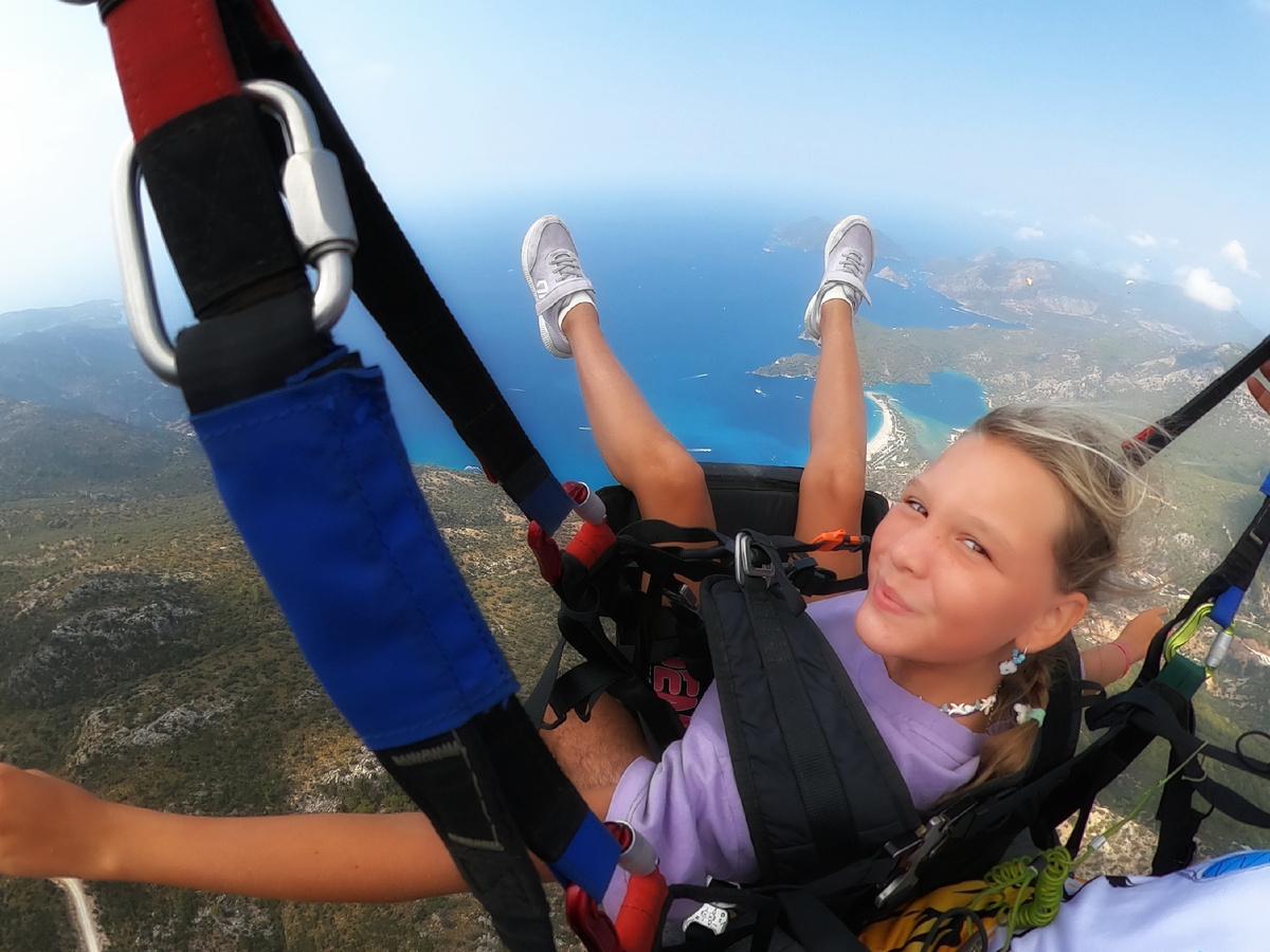 Я уже писала статью о своем полете на параплане. В этот раз мы полетели в Турцию и приехали в Олюдениз, чтобы сделать подарок доченьке на одиннадцатилетие. Мы заказали экскурсию на центральной улочке Олюдениза, которая ведет к морю. Заплатили 80 долларов, в эту стоимость входит подъем на гору полет с инструктором, видео и фото. И на следующий день в 10 утра посадили свою доченьку в микроавтобус и отправили наверх - на вершину горы Бабадаг. Сами отправились на пляж , именно туда приземляются парапланеристы, чтобы встретить ее. Милана была счастлива! Она ни капельки не испугалась, ее не укачачивало ни при подъеме на гору, ни в полете! Все прошло отлично! Подарок понравился! Рекомендуем как взрослым, так и детям! НО! Есть один недостаток, после этого полета вас трудно будет чем-то удивить!Эти эмоции и увиденная красота ни с чем не сравнятся! Благодарю за простение!