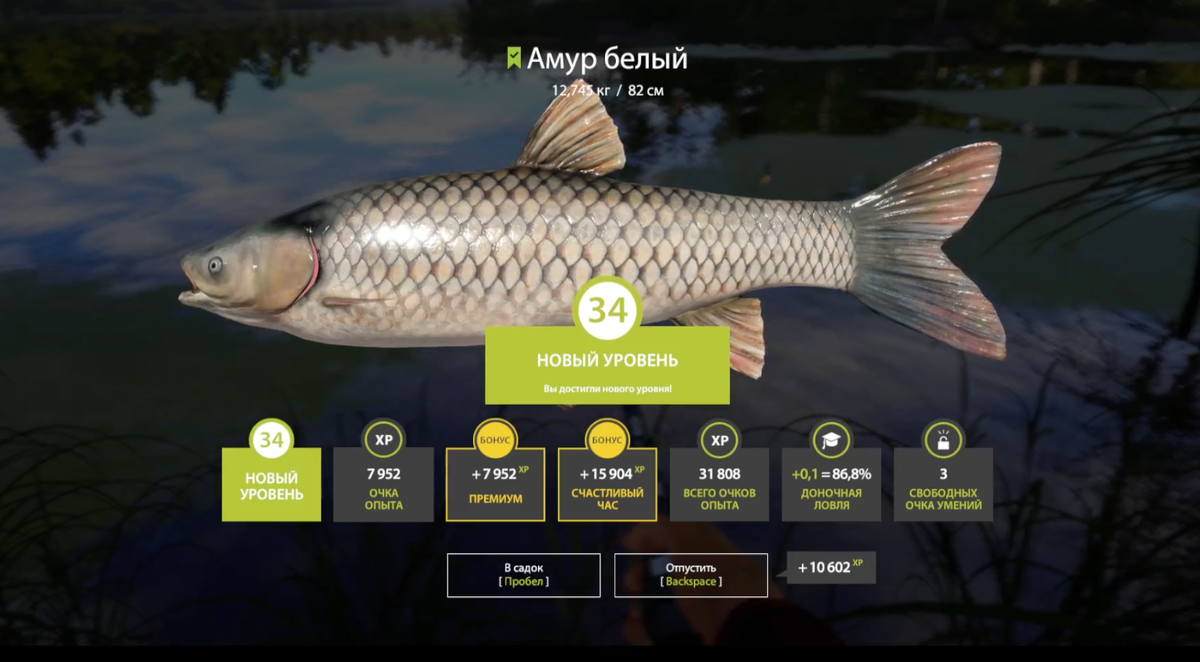 Всех приветствую!!! Поймав этого Амура, на Остроге, у меня открылся 34 лвл. А это значит мне открылось Норвежское море!!! Ура, ура, ура. Но как говориться есть один нюанс)) Морских снастей пока нет. Только коплю на них. Буду приобретать кату Ригал и удочку Сенси. Думаю ближе к новому году это произойдет и я начну радовать Вас стримами и видосами уже с Норвежки и не по турику))
