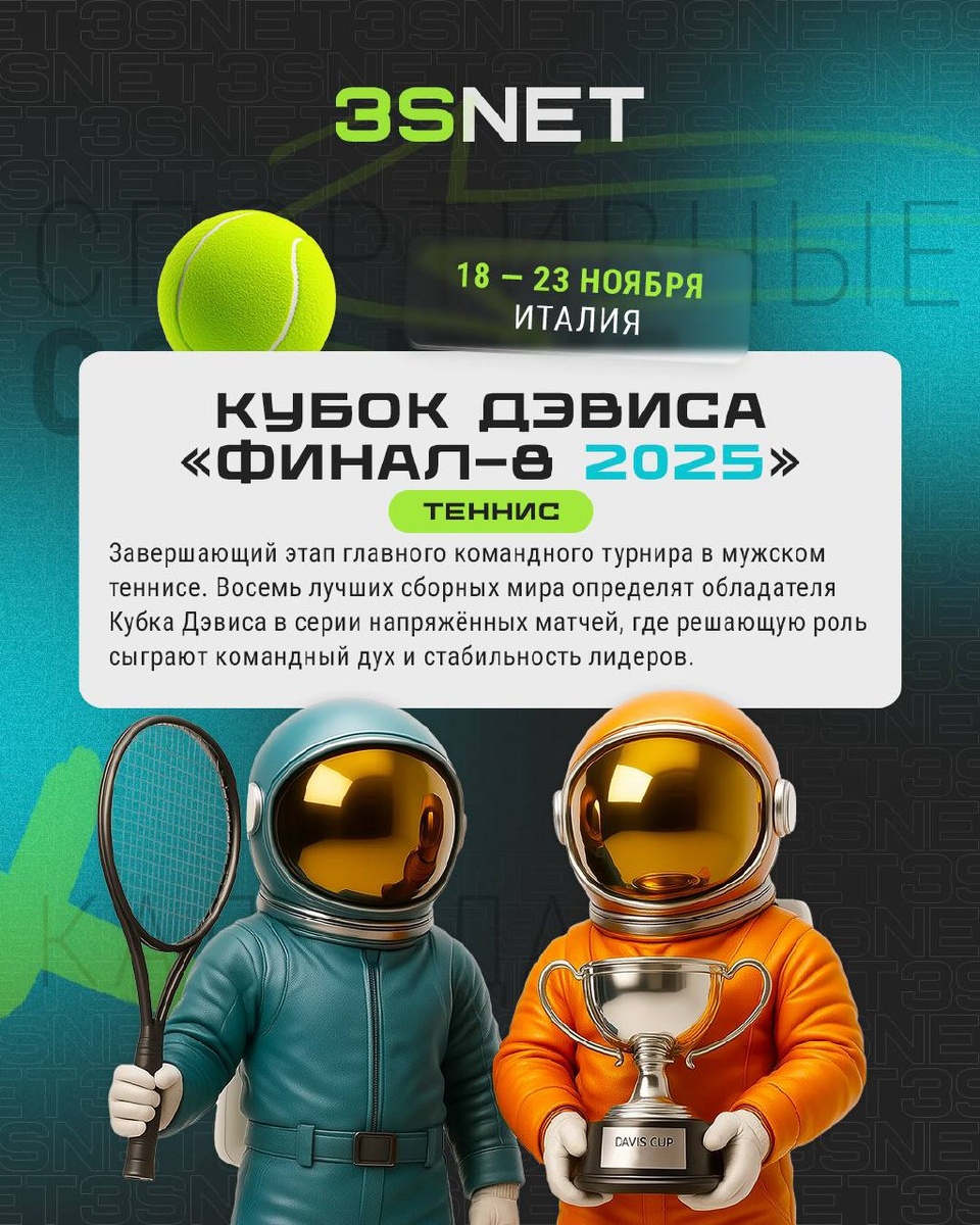 ⚡️ Топ беттинг событий недели: держись крепче, будет жарко Пока Формула-1 пролетает сквозь огни Лас-Вегаса, лучшие теннисисты мира сражаются за Кубок Дэвиса, а бойцы в Саудовской Аравии готовятся устроить взрыв силы и эмоций. Финалы, титулы и реванши — всё в одном потоке драйва. ✔️ Загляни в свежие карточки, отметь топ-ивенты и готовь креативы — неделя обещает подарить поводы для вдохновения. 👉 Все события — в нашем календаре. НАВИГАЦИЯ | РЕГИСТРАЦИЯ | БЛОГ