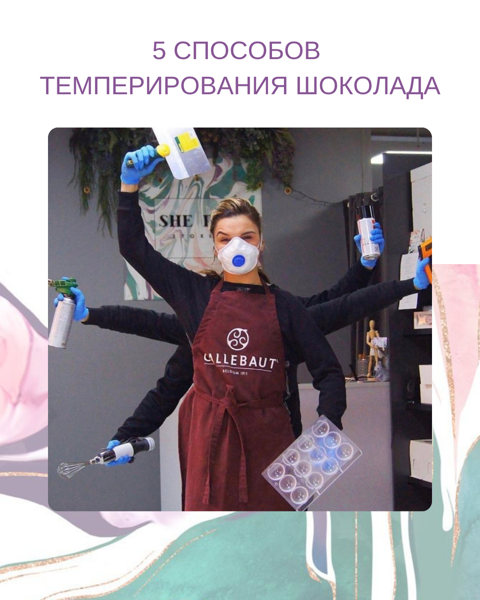 – важный навык для любого кондитера! 👩🏻🍳 Красивый шоколадный декор, плитки, 🍬 конфеты, фигуры из шоколада – все в это невозможно без темперирования 🌡️ Так давайте разберемся, как темперировать шоколад 🍫 просто и приятно 😍 Листайте карусель и обратите внимание на наши два любимых способа: каллетами и Mycryo. Они очень удобные! Пирометры, щуповые термометры, шпатели, формы и, конечно, вкуснейший шоколад, ждут вас в She Ra Store 💜