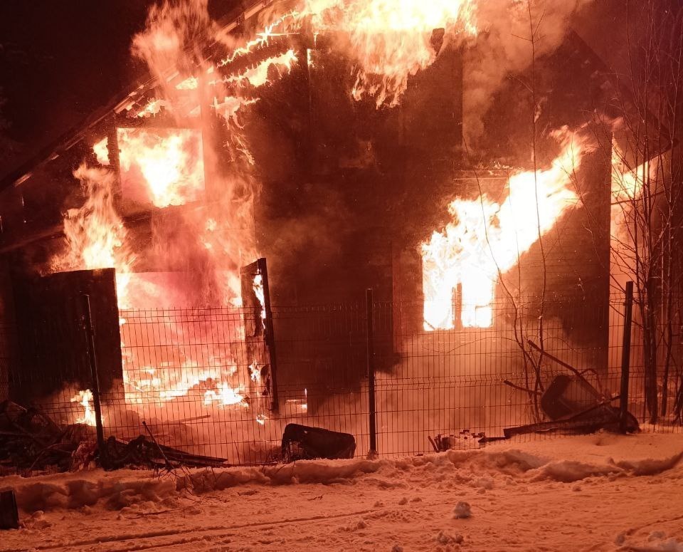 🔥Почти пять часов спасатели тушили пожар на станции Тайбола 14 ноября в 15.42 на номер 112 поступило сообщение о возгорании в двухэтажном деревянном доме с пристройкой на ул. Морошковая, 94 в СНТ «Садко» на железнодорожной станции Тайбола. К месту происшествия сразу выехали дежурные караулы ПЧ-27, ПЧ-22 и ПЧ-20 Кольского филиала ГПС. В ликвидации пожара задействованы семь человек личного состава и три пожарные автоцистерны. Как сообщает Управление по ГОЧС и ПБ Мурманской области, в 18.23 было локализовано возгорание, а в 21.07 полностью ликвидировали пожар. В результате этого возгорания дом и гараж полностью уничтожены огнем (площадь - 48 кв.м). Причины пожара и ущерб от него предстоит установить. Фото: Управление по ГОЧС и ПБ Мурманской области.