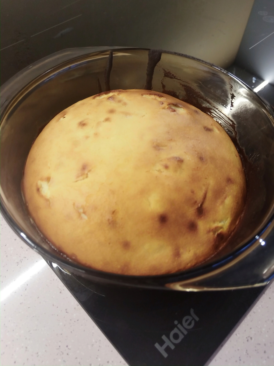 Творожная запеканка с яблоками! Сегодня готовила творожную запеканку. Ребенок сказала, что надо сделать с яблочком. Ну что ж, решила попробовать. На две пачки творога 0.180 грамм, 2 яйца, 3 столовых ложки манки, немного сливочного масла растопленного, соль, сахар по вкусу. Творог, яйца соль и сахар пробила погружным блендером. Добавила манку и очищенные от кожуры, порезанные яблоки и сливочное масло. Масла должно было быть больше, но я его перегрела в микроволновке и оно там взорвалось😁 Перемешала лопаткой. В форму, смазанную сливочным маслом, перелила тесто и отправила в духовку на 200 градусов на режиме конвекция верх и низ на 40 минут. И вот такая запеканка у меня получилась. Приятного аппетита 😋