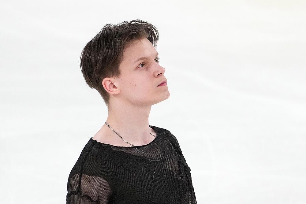 Никита Сарновский. Тренер Евгений Плющенко. Посмотрите на дорожку шагов. Ему поставили её третьего уровня. Я на ней насчитал три грубых ошибки. И я не знаю, дотягивает ли она до второго уровня, либо нет. Вот так у нас добавляют уровни одному и понижают их "недостойным".