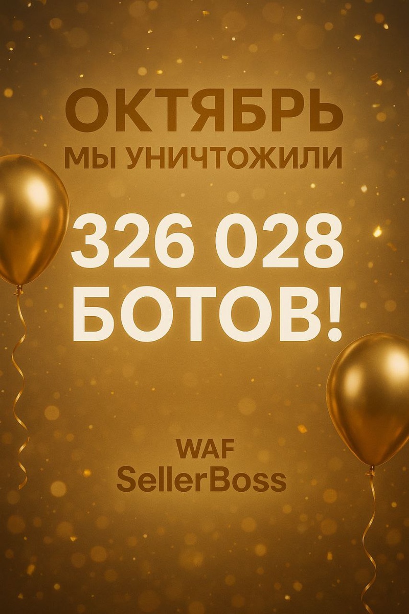 За октябрь мы уничтожили 326.028 ботов!😎 Каждый бот = урон вашему сайту. Мы предоставляем вам наилучший и качественный продукт. Защита WAF SELLERBOSS, это не просто защита сайта, это настоящая стена которая разделяет 2 мира: ваш сайт и атаку ботов. 326 тысяч это огромное число, но WAF SELLERBOSS и не такое видел) Наша защита может выстоять огромные атаки ботов и хакеров. WAF SELLERBOSS - будьте спокойны за свой сайт