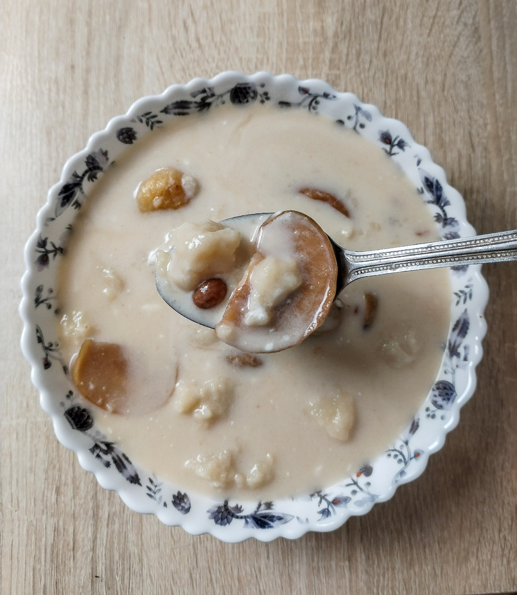 Если вы давно читаете мою рубрику про немецкие семейные традиции, то уже знаете: немецкая кухня — это настоящий парад теста во всех агрегатных состояниях. Тут тебе и кнедли, и клецки, и всевозможные пироги, и тесто в супе, и тесто вне супа. Иногда кажется, что наши предки могли сделать тесто даже из воздуха — если бы сильно захотели. Но сегодня у нас блюдо не просто тестовое, а прямо-таки *детство-детство*. Тот самый сладкий холодный суп — шниттсуп, который постоянно готовила моя бабушка. Мне кажется, он всегда существовал в нашем доме. Не помню, когда попробовала его впервые: просто помню, что он *был*. И я его очень любила. А ещё — что в детском саду давали что-то похожее, только с вариациями. Итак… что же это за загадочный суп, который называется почти как лук, но никакого отношения к нему не имеет? Шниттсуп — это компот из сухофруктов с клецками, щедро заправленный сметаной. Да, вы всё правильно прочитали — компот. С клецками. Холодный. И, поверьте, это гораздо вкуснее, чем звучит.