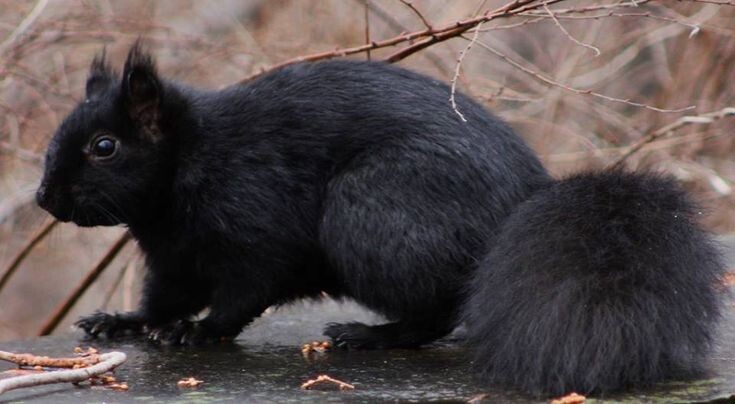 Дельмарвская чёрная белка, также известная как восточная серая белка (Sciurus carolinensis) в её меланистической форме, представляет собой удивительное зрелище и важную часть экосистемы. Несмотря на своё "чёрное" название, это не отдельный вид, а скорее цветовая вариация широко распространённой восточной серой белки. Полное описание: Поведение: Дельмарвские чёрные белки ведут дневной образ жизни, проявляя наибольшую активность утром и вечером. Они известны своей подвижностью, ловкостью и умением быстро перемещаться по деревьям.Питание: Их рацион разнообразен и включает в себя орехи, семена, почки деревьев, фрукты, ягоды, грибы, а иногда и насекомых или яйца птиц. Они известны своей привычкой запасать пищу на зиму, закапывая её в землю.