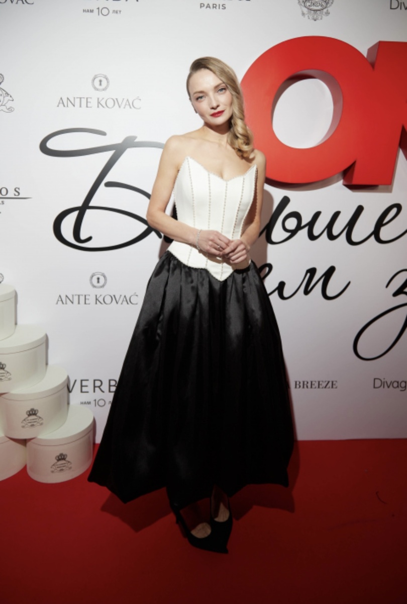 Екатерина Вилкова выглядела словно настоящая принцесса в элегантном корсетном платье. Вообще, несмотря на отсутствие официального дресс-кода, на вечере доминировала черно-белая гамма.