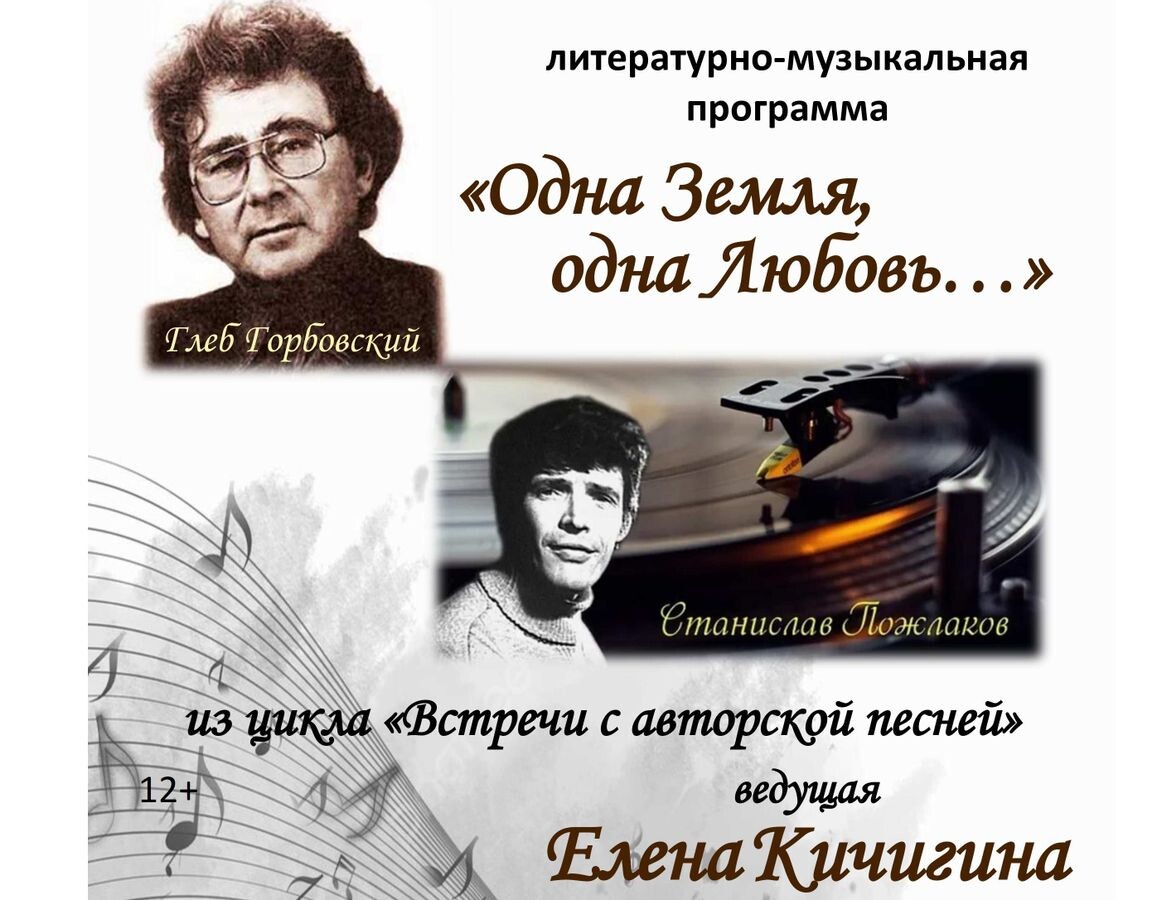 В ЦГБ Семевского состоится литературно-музыкальный вечер «Одна Земля, одна Любовь…» (12+) 📌 25 ноября в 17:30 в конференц-зале Центральной городской библиотеки им. М.И. Семевского пройдет литературно-музыкальный вечер «Одна Земля, одна Любовь…» (12+). ✨ Мероприятие посвящено творческому союзу ленинградцев — поэта Глеба Горбовского и композитора Станислава Пожлакова. Их песни, такие как «Пора любви», «Топ-топ», «Колыбельная с четырьмя дождями», были невероятно популярны в 1960–80-е годы. 🎤 Прозвучат стихи и песни в исполнении Елены Кичигиной. Вход на вечер свободный. 👉Подписывайтесь на ВЛуки.ру