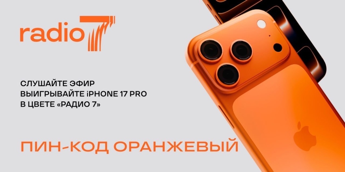 «Радио 7» дарит iPhone 17 Pro в цвете Cosmic Orange. Фирменный оранжевый цвет «Радио 7» и Cosmic Orange не могли не встретиться в этом сезоне. С 17 по 30 ноября 2025 года «Радио 7» приглашает слушателей участвовать в федеральной акции «Пин-код оранжевый». С понедельника по четверг в эфире будут появляться короткие музыкальные подсказки — по одной цифре в день, несколько раз в разное время. Это могут быть составы легендарных групп, количество вышедших альбомов или факты из истории хитов «Радио 7»: всё, что поможет сложить правильную комбинацию. По пятницам ведущие объявляют финал в Telegram-канале «Радио 7»: чтобы участвовать, надо подписаться на канал, заполнить анкету и оставлять комментарий «пин-код» под финальным постом — без ограничений по количеству. В определённый момент в эфире и в комментариях прозвучит команда «СТОП»: автор последнего комментария до «СТОП» выходит в прямой эфир и называет пин-код недели.
