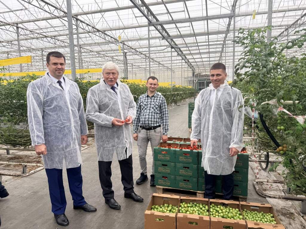 14 ноября заместитель председателя Законодательного Собрания Ростовской области – председатель комитета по аграрной политике Вячеслав Николаевич Василенко и начальник управления животноводства и племенного дела министерства сельского хозяйства и продовольствия Ростовской области Геннадий Петрович Немашкалов в ходе рабочей поездки в Веселовский район ознакомились с работой сельскохозяйственного предприятия «АгроСК». Встречали гостей Глава Веселовского района Алексей Павлович Панкратов, генеральный директор «АгроСК» Дмитрий Алексеевич Ефимов и главный агроном сельхозпредприятия Виктор Андреевич Ревеньков. Для приглашенных гостей была организована экскурсия по современному тепличному комплексу, где ведется выращивание и сбор овощей в условиях защищенного грунта. Основной выращиваемой культурой является томаты. — На предприятии применяются инновационные методы, в частности, беспочвенное выращивание томатов с использованием специальных питательных растворов. Это позволяет добиваться высоких
