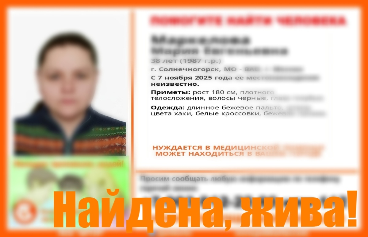 С 7 ноября 2025 года ее местонахождение неизвестно. если у вас есть сведения, которые могут посодействовать поиску,
