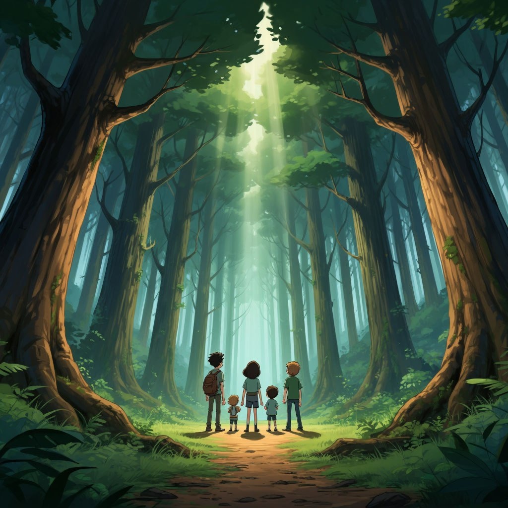 Тьма рассеялась, и перед ребятами раскинулся густой, таинственный лес. 🌲🌳