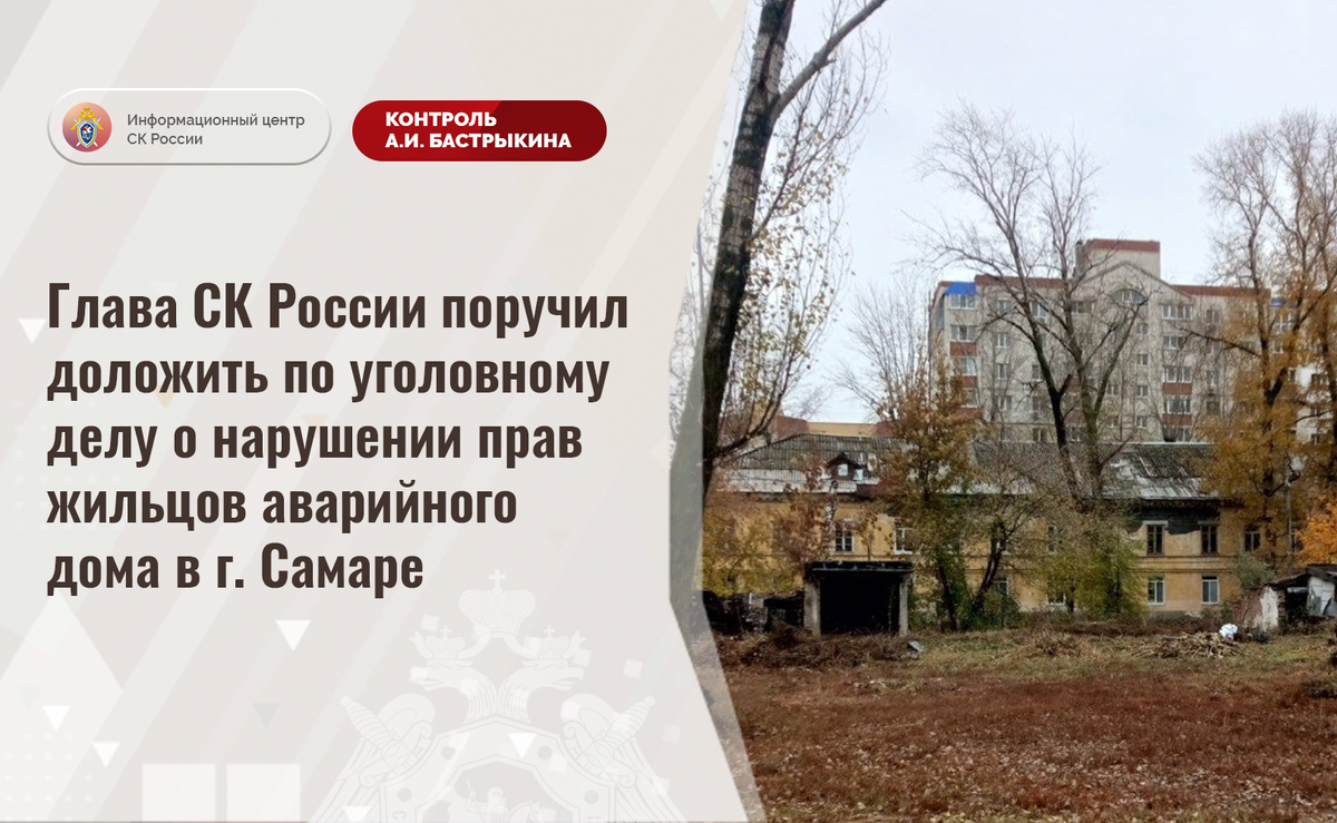 Глава СК России поручил доложить по уголовному делу о нарушении прав жильцов аварийного дома в г. Самаре К Председателю СК России А.И. Бастрыкину через Информационный центр поступило обращение по вопросу длительного нерасселения жильцов многоквартирного дома на улице Краснодонской города Самары. Здание 1947 года постройки находится в непригодном состоянии: разрушаются несущие конструкции, в стенах появились трещины, нарушена целостность кровли, отсутствует канализационная система. Несмотря на признание строения аварийным в 2023 году, мер к предоставлению гражданам благоустроенного жилья не принимается, установленный на текущий год срок расселения перенесен на пять лет. Многочисленные обращения в различные инстанции результатов не принесли. В СУ СК России по Самарской области возбуждено уголовное дело. Председатель Следственного комитета Российской Федерации Александр Иванович Бастрыкин поручил руководителю СУ СК России по Самарской области Павлу Михайловичу Олейнику представить доклад