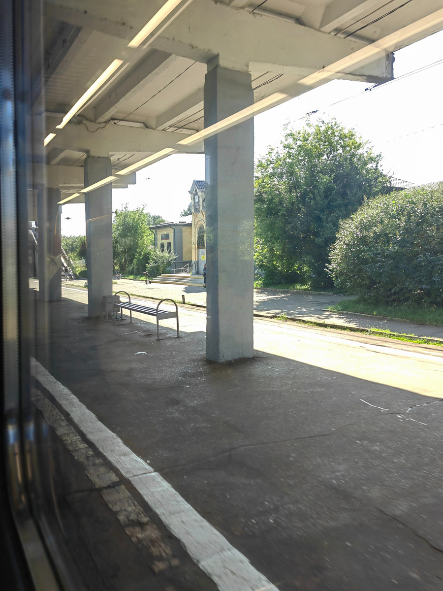 Очередной населённый пункт, о котором хочется сказать пару слов называется весьма необычно - Дрезна (ударения на последний слог). Его в наших летних отпускных планах не было, потому что о таком городе ранее мы ничего не слышали. Но по пути из Павловского Посада в Орехово Зуево из окна электрички вдруг увидели красивую станционную постройку. Это было так неожиданно, что я успел сделать только такое фото...