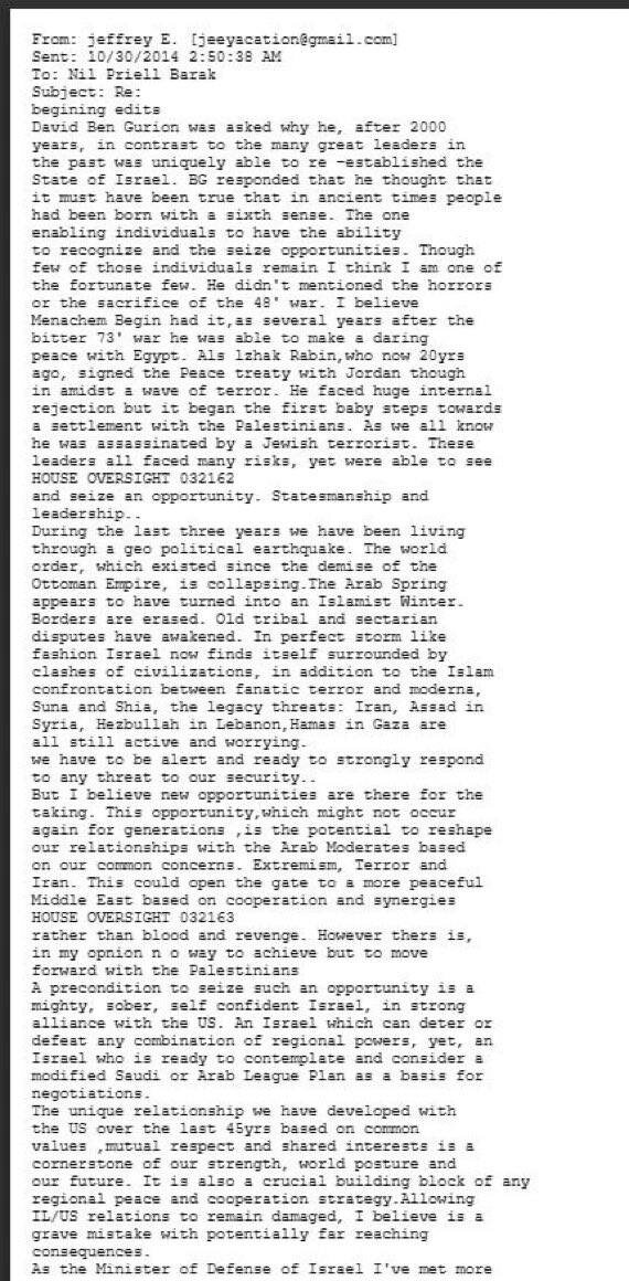 🇺🇸🇮🇱 Эпштейн был не только извращенцем. Он еще и консультировал Израиль (премьер-министра Эхуда Барака) по ситуации на Ближнем Востоке. «…я считаю, что есть новые возможности, которые нужно использовать, которые могут возникнуть для целых поколений. Это возможность, которая не обязательно появится, но существует потенциал изменить наши отношения с арабскими странами на основе общих проблем….» «…Мир, который существовал с момента распада Османской империи, рушится. Арабская весна превратилась в исламскую зиму. Границы размыты. Старые племенные и секторальные споры снова проснулись. В идеальном шторме, Израиль теперь окружен с разных сторон столкновениями цивилизаций…»