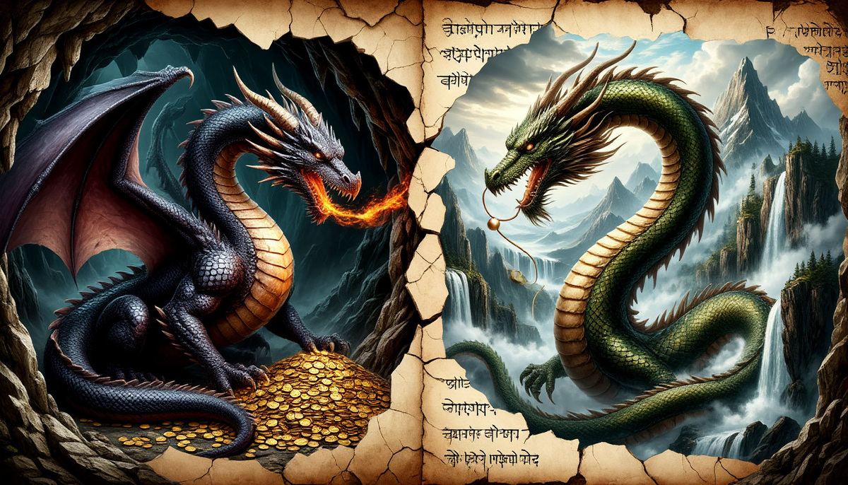 - Восточный дракон (Лун) — воплощение порядка. В Китае, Японии и Корее дракон — это божество небес и воды. Он не приносит огонь, а дарит живительный дождь. От его благосклонности зависит урожай, а значит — жизнь всей общины. Он парит в небесах, извивается в речных потоках, символизируя саму жизнь и мировой порядок (Дао). Он — не враг, которого нужно победить, а могущественный покровитель, которого нужно ублажать.