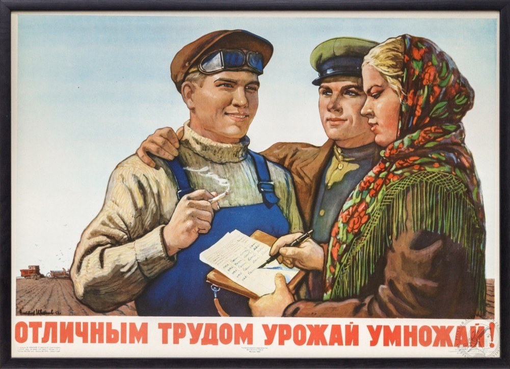 Русская антикварная галерея Сайт: rus-gal.ru #Иванов В.С.- #Плакат «Отличным трудом #урожай умножай!» #СССР, 1952 год. Бумага, офсетная печать. 56,5 Х 79 см #Соцреализм #Агитационный_жанр #Агитплакат Подробнее: https://rus-gal.ru/works/plakat-otlichnym-trudom-urozhaj-umnozhaj/
