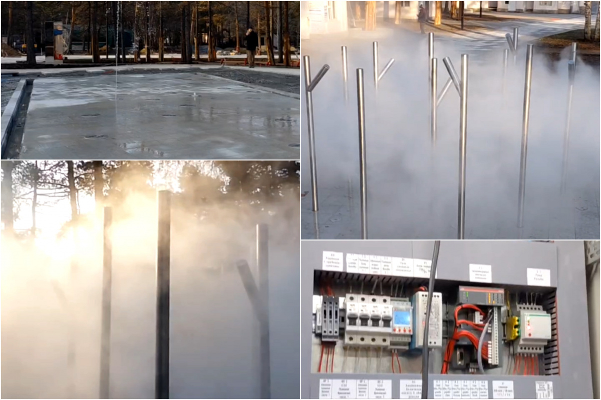 Один из фонтанов — пешеходный, с яркой подсветкой и струями высотой почти три метра. Конструкция рассчитана на безопасное пребывание посетителей рядом с оборудованием. Второй объект — паровой фонтан, редкий для Уральского региона формат. Он оснащён белой мерцающей подсветкой, а лёгкий пар создаёт визуальный эффект, который будет заметен особенно в вечернее время.
