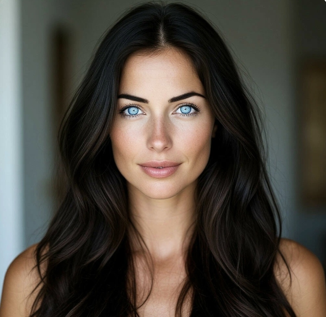 На кухню зашла высокая, очень красивая девушка, с длинными чёрными волосами и голубыми глазами. Фигура, позавидует сама Клаудиа Шиффер.