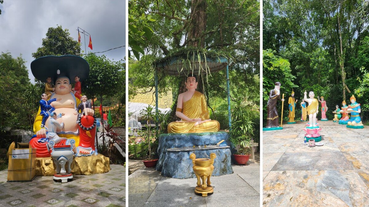 На Фукуоке, в пагоде Su Muon, скульптор решил по-своему: вокруг Будды сидят взрослые мужчины в современной одежде. Это как маленькая сцена про обычных людей — чиновников, предпринимателей, рабочих, — которые тянутся к Будде будущего со своими заботами. Получается, что здесь Ди Лặc — не только про «счастливую семью», но и про очень земные вопросы: работу, деньги, статус, внутреннее спокойствие среди всего этого.
