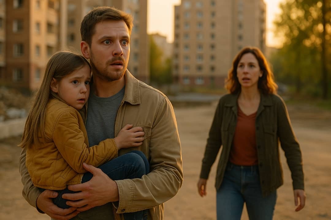 Павел вздохнул облегчённо: ребёнок цел. Он поднялся, взял девочку на руки — она всё ещё дрожала — и направился к выходу из стройки.