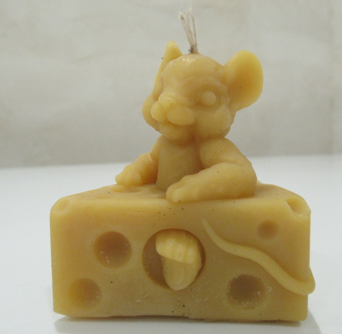 Приветствую Всех!!! Воска остаётся совсем чуть-чуть, хватит ещё от силы на десяток свечей. Можно ещё с полкило выплавить из срезков, но там мусора больше, чем воска. Как бы там ни было, но с каждой достаточной по сумме продажи мы покупаем очередную форму. И этот раз не стал исключением... На востоке мышь служит символом богатства и его накопления. Символизм сыра имеет тот же смысл - богатство, сытость и изобилие. В индуистской мифологии мышь это ездовое животное бога мудрости Ганеши. В древнерусских поверьях мышь считалась предвестником различных событий, что характерно плохим прогнозом было, если мыши покидали дом - это считалось признаком грядущего пожара. Отметилась мышь и в христианской религии - в христианстве мышь считается символом смирения и кротости. А легенду появления сыра знаете? Сыр появился на свет благодаря любви юноши Мичико к прекрасной Луне. Но Луна не отвечала ему взаимностью и только сделав сыр и преподнеся его в дар возлюбленной Мичико разжег в ней любовь.