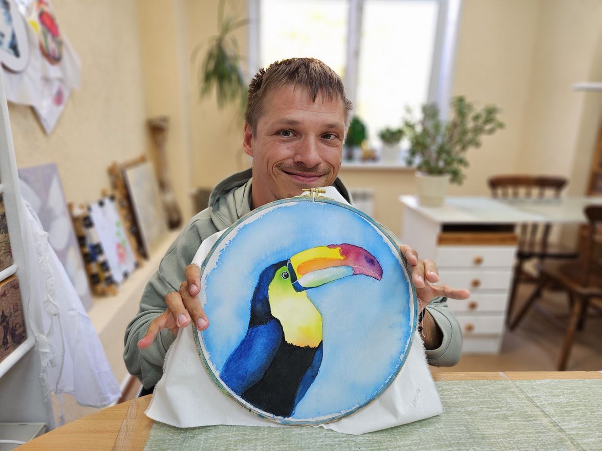 🎨 Творчество в центре «Ремесла» В центре реабилитации «Ремесла» участники осваивают различные направления трудовой и художественной реабилитации — от мыловарения и валяния до батика и изготовления игрушек. Среди недавних достижений — пушистые игрушки из помпонов и первые работы по вышивке лентами, которые создал Дмитрий Чернилин; реалистичный коврик в технике мокрого валяния, выполненный Елизаветой Юдаковой; а также яркие изделия в технике холодного батика, над которыми работают Рамиль и его мама Сания. Каждое направление помогает участникам пробовать новое, развивать навыки и видеть результат своего труда. Центр «Ремесла» продолжает развивать творческие направления, помогая каждому раскрывать способности.