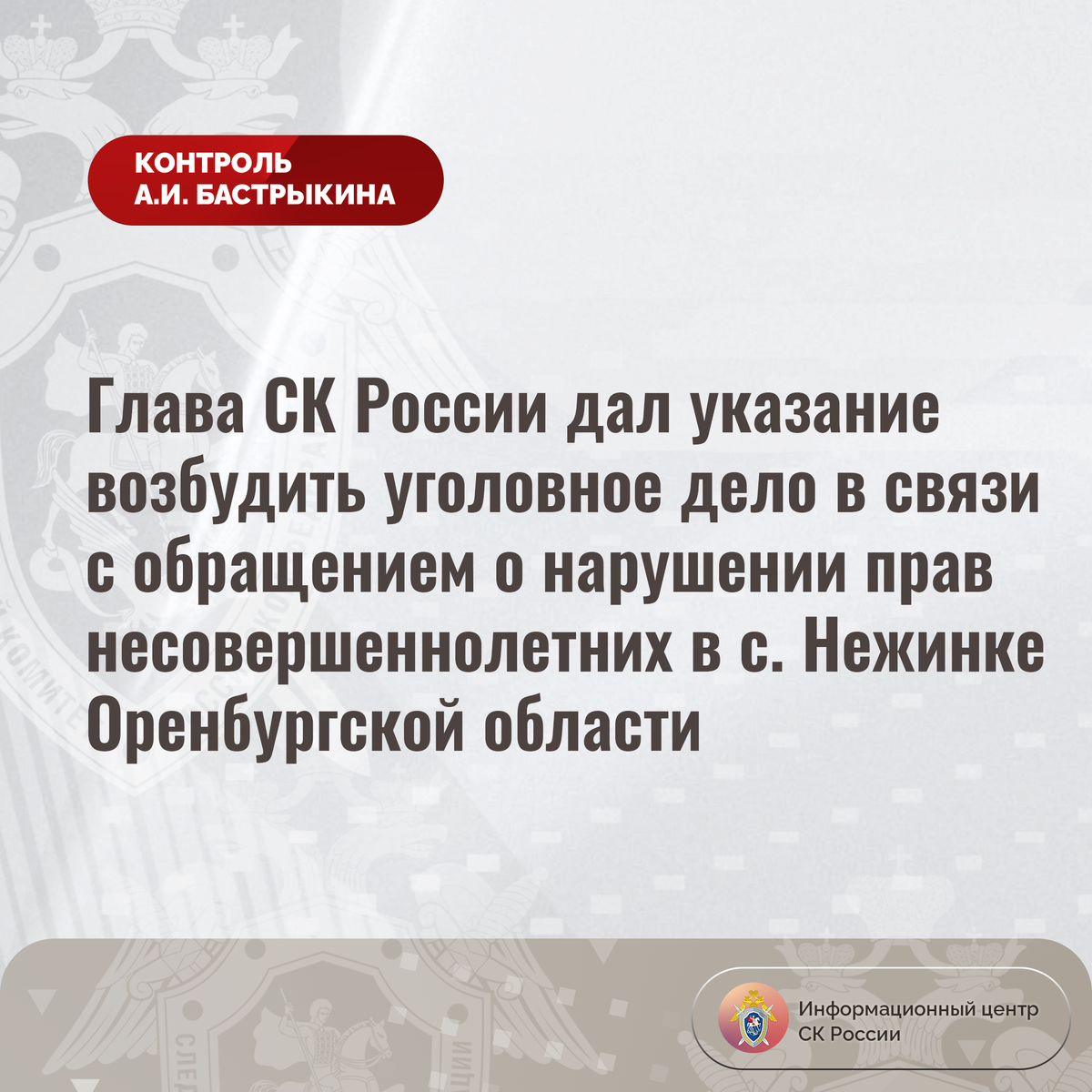 Глава СК России дал указание возбудить уголовное дело в связи с обращением о нарушении прав несовершеннолетних в с. Нежинке