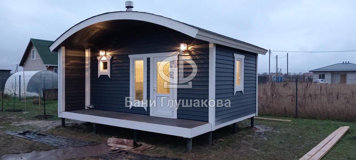 Классическая баня «Бурже» в цвете ночного неба — это тот самый случай, когда строение на участке становится не просто баней, а атмосферным
