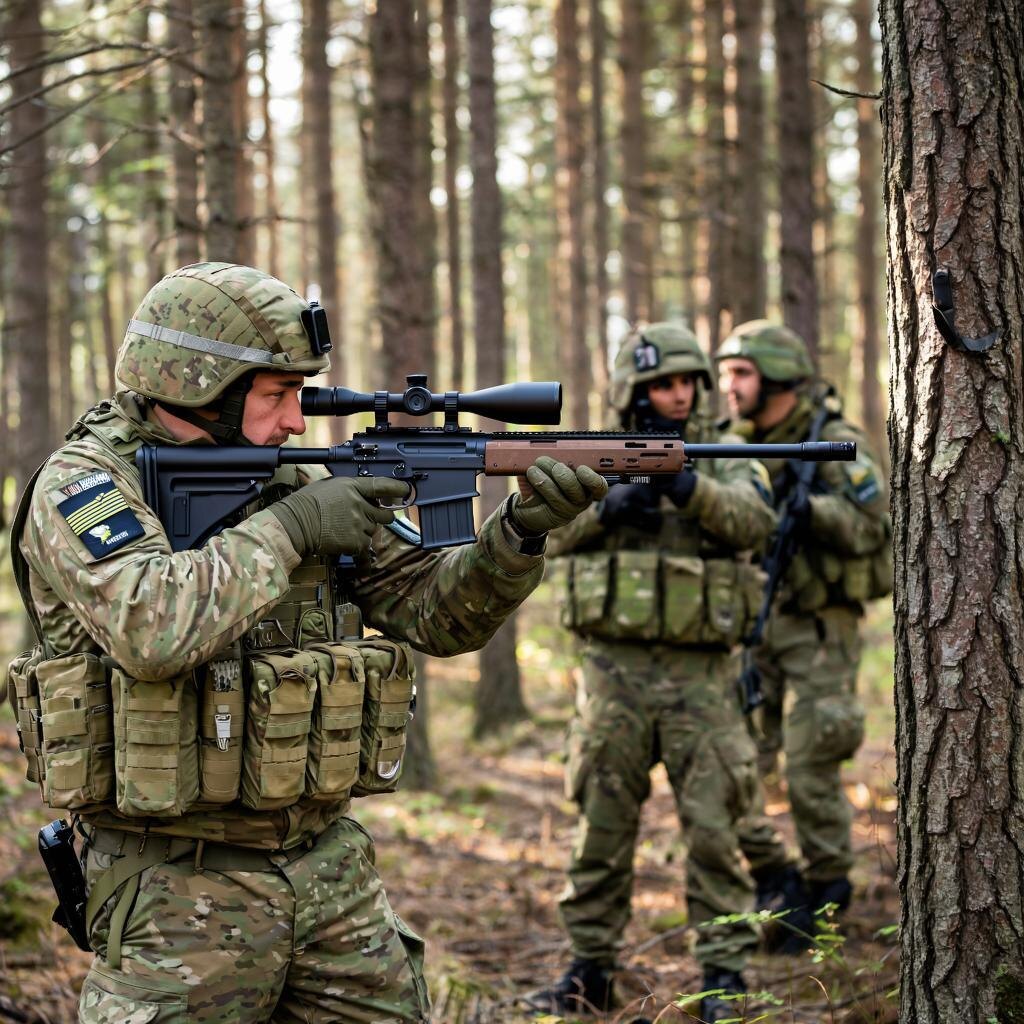 Наступила глубокая ночь, звезды мерцали ярко, будто кто-то включил гигантские фонари высоко над землей. Полковник Василий Петрович Гуськов стоял посреди заснеженного леса, пристально глядя на карту местности. Рядом находились бойцы группы специального назначения "Запад": крепкие парни в камуфляже, вооружённые новейшими образцами оружия российского производства.