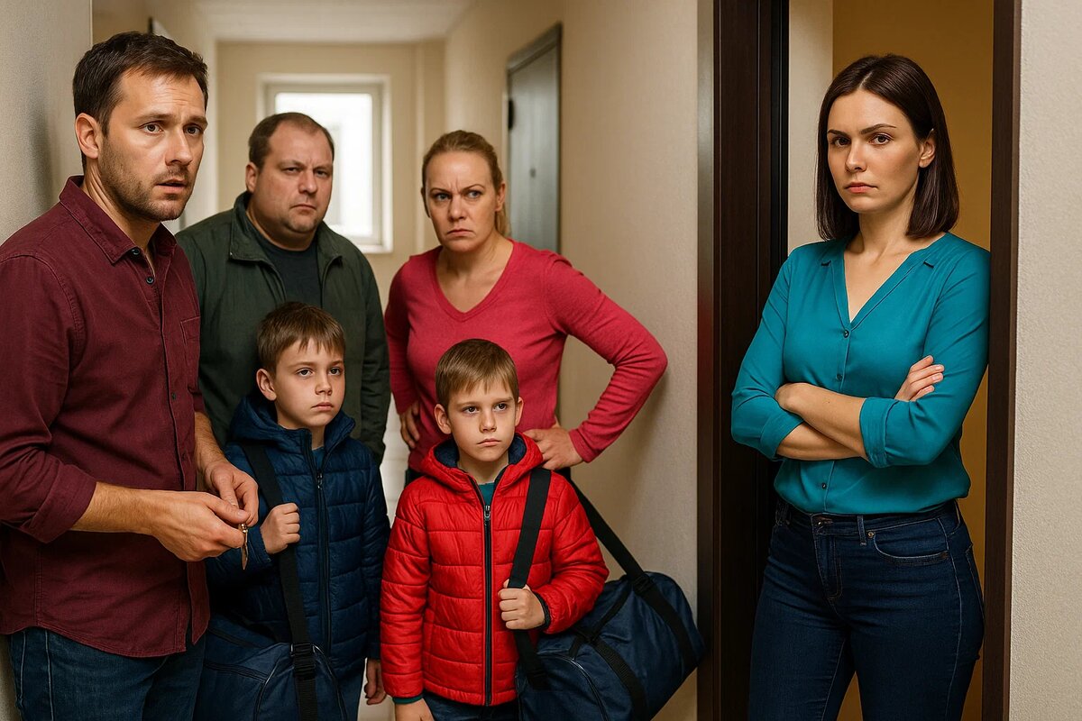 В понедельник, около двух дня, в дверь позвонили. Вера посмотрела в глазок — Кирилл, рядом Леонид, Светлана, двое детей с огромными сумками. Кирилл выглядел уверенным, довольным. Решил, что она сдалась.