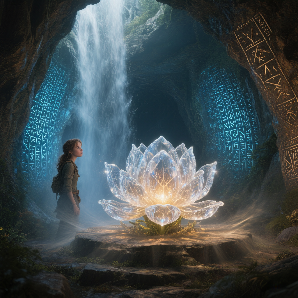 В центре пещеры на возвышении лежал Каменный Цветок. Это был не кристалл и не металл. Он напоминал гигантский, полупрозрачный бутон лотоса, сотканный из застывшего света и твёрдой энергии. От него исходило тихое, мощное гудение, отзывающееся в каждой клетке её тела.