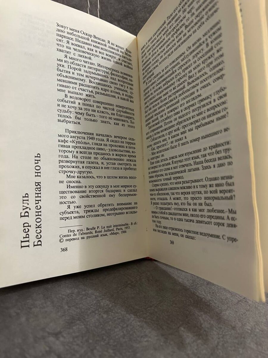 Пьер Буль, «Бесконечная ночь» Вообрази, что через какое-то время секрет радиоволн будет утерян. Те, кому спустя много лет доведется раскопать в земле обломки ваших машин, не будут иметь никакого понятия о назначении хитроумных устройств, которыми ты так гордишься. Они решат, что перед ними какие-то талисманы или произведения искусства. Именно так рассуждают ваши археологи, натыкаясь на обломки сосудов и металлические предметы, испещренные непонятными письменами и символами… Сегодня у нас короткий рассказ, найденный в сборнике французской фантастики прошлого века. Подойдет любителям книг про путешествия во времени. Классно обыграна ситуация с парадоксом «убитого дедушки», можно запутаться, причем несколько раз. В очередной раз убедилась, насколько у Буля яркие и не похожие ни на что произведения. Но мой фаворит пока по-прежнему «Мост через реку Квай» 🤩