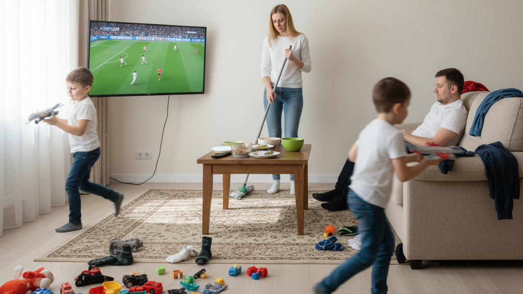 Логика проста: если в доме есть женщина, значит, она и отвечает за уют и чистоту. При этом удивительно, как редко сами мужчины замечают, что львиная доля бардака — именно их заслуга.