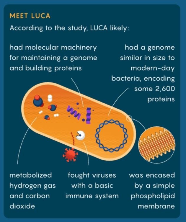 https://dzen.ru/media/id/65d9aeb9fb98fa6a95dd97f4/-pro-pervichnyi-bulon-vrode-doljny-pomnit-esce-so-shkoly-69184271b7bbb3634df9a277 Знакомься, это твой прапрабатя, или матя. Кароч, просто предок. Самый главный. Если бы не этот чувак, то даже бактерий бы не было, че уж там, человечишка. Последний универсальный общий предок Last Universal Common Ancestor. LUCA («Лука») Забавно, что зовут его Лука, а не Адам 😂 Каким-то невероятным образом был бульон, потом молекула РНК. "Она" поняла, что сама не справляется и не может долго хранить информацию и вообще неустойчива. Благодаря этому появились прогеноты - чуваки без чёткого определения количества генов и кто они вообще по-жизни. И из них вырос Лука (3.6 МИЛЛИАРДОВ лет назад). По мнению Евгения Кунина он возможно даже не имел мембраны и просто состоял из набора РНК и ДНК LUCAs (Last Ancestral Universal Common State — последнее универсальное предковое состояние) А может эти товарищи развивались параллельно. Либо это был батя оригинальн