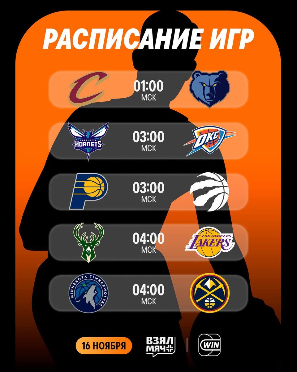 📺 Расписание ночных матчей НБА! Какую игру будете смотреть? 01:00 | Кливленд — Мемфис 🎙️ Матвей Юдкин 03:00 | Шарлотт — Оклахома 🎙️ Степан Будяков 03:00 | Индиана — Торонто 🎙️ Егор Родионов 04:00 | Милуоки — Лейкерс 🎙️ Сергей Абаев 04:00 | Миннесота — Денвер 🎙️ Дмитрий Хамидулин Прямые трансляции всех матчей смотрите в нашей группе ВК! 🏀 ПОДПИШИСЬ — ЗДЕСЬ ЖИВЁТ БАСКЕТБОЛ!