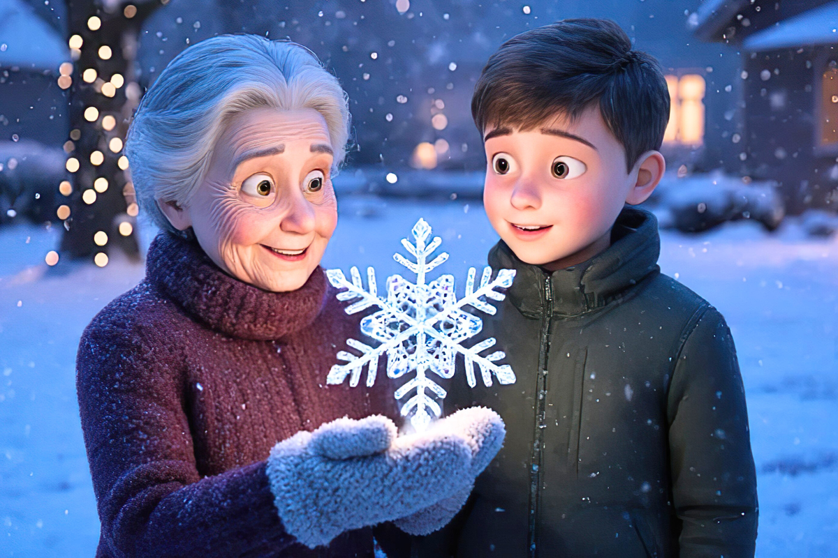 — Видишь, — начала бабушка, — снег состоит не из мягких хлопьев, как в мультиках, а из настоящих кристаллов льда. У каждой снежинки есть узор: шестилучевая «звёздочка», иголочки, пластинки, колонны… Их больше 40 видов! И каждая снежинка — это как маленькая хрустальная фигурка.