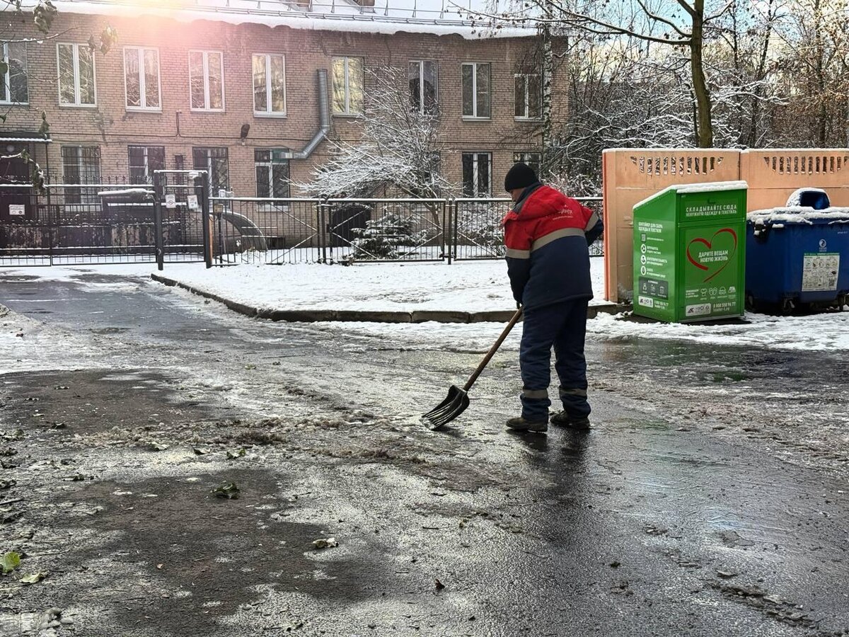 В день первого снега на уборку дворов вышли 161 дворник, 49 единиц уборочной техники.