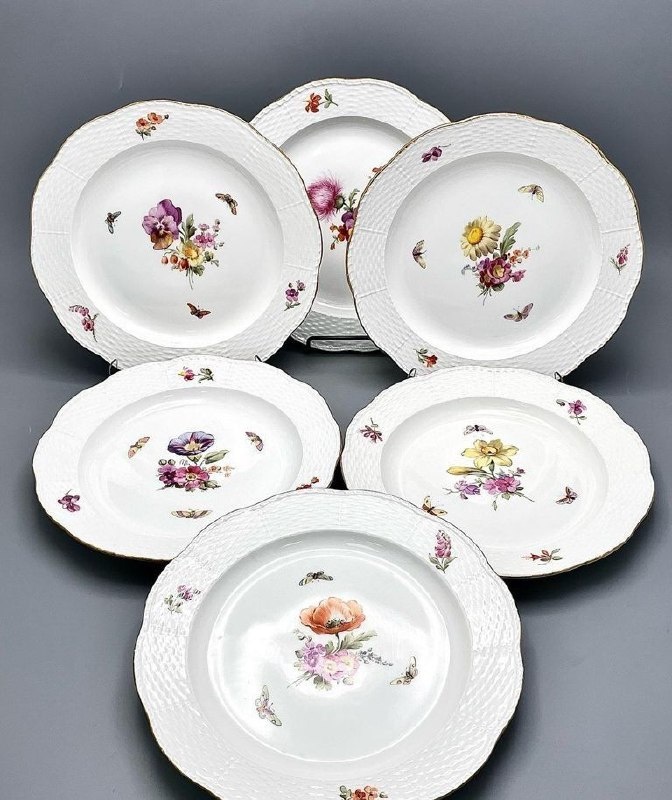 Тарелки обеденные KPM из сервиза кайзера Германии Вильгельма 2, 1908 год Тарелки обеденные производства Германии, KPM Королевская фарфоровая мануфактура в Берлине, из сервиза кайзера Германии Вильгельма 2, 1908 год, (115 лет!!) Материал: фарфор, ручная роспись, золочение. Комплект 6 шт. размер: диаметр 24,5см. Королевская фарфоровая мануфактура КРМ, 1908 Стоимость лота: 220 000,00 ₽ Подробнее на нашем сайте
