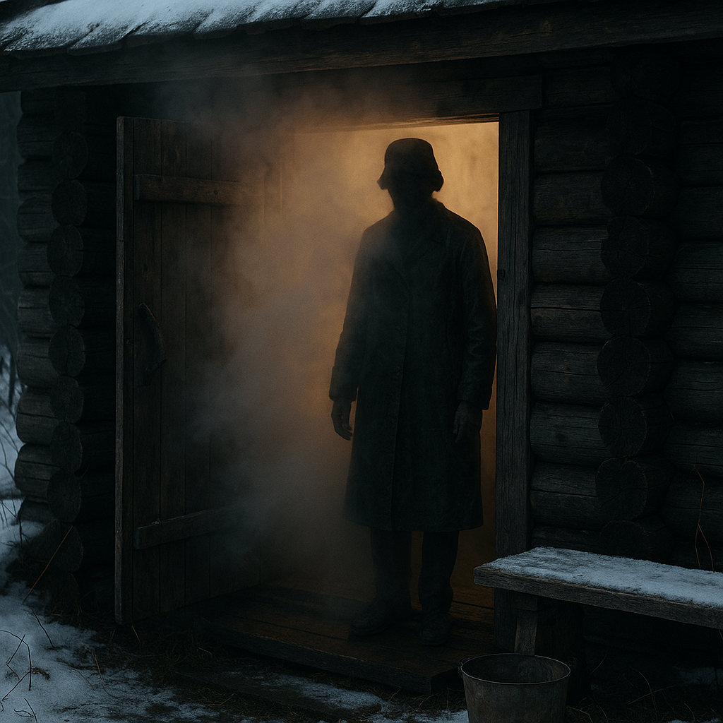 Я пошёл к бане. Там всегда были ведра с водой — если что, можно укрыться и дать пар. Под окном перевёрнутый таз. Под ним — аккуратная царапина, как от чего-то острого. Я присел, рассмотрел — и услышал из дома три тихих стука, как ложкой о стекло.