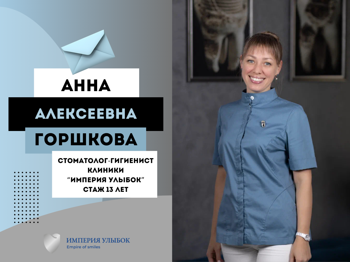 Вам письмо от стоматолога-гигиениста клиники "Империя улыбок" Горшковой анны Алексеевны.