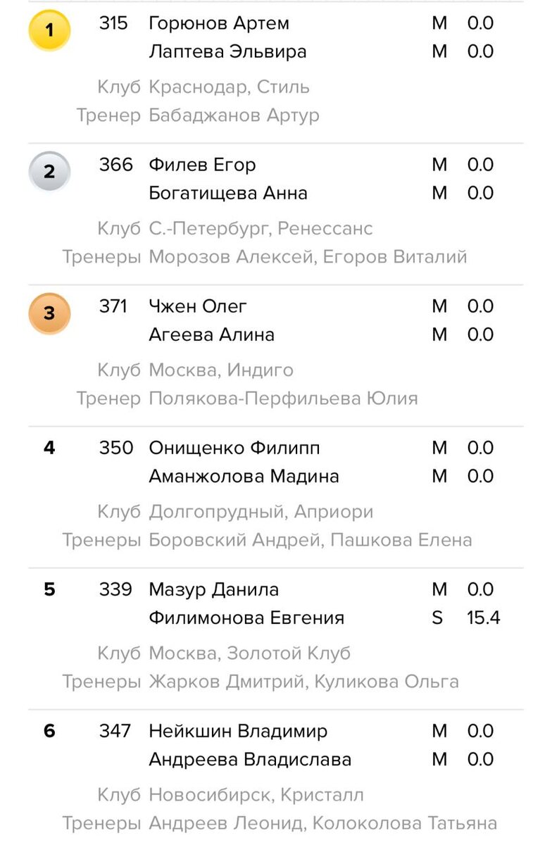 Результаты ВС Новосибирск, Взрослые Латина