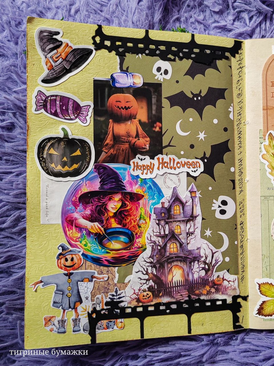 Тема: весёлый Хэллоуин + киноплёнка 🎬 По мере выполнения заданий я всё чаще задумываюсь о том, что надо было брать маленький блокнот для марафона, тогда бы точно успела вовремя все темы оформить. Но оглядываясь на блокнот по junkjournaljuly, 😕 становится стыдно, ведь я его так и не закончила. Надо взять себя в руки и до конца года оформить последние коллажи. Так что размер не имеет значения: что большой блокнот, что маленький, – главное иметь вдохновение, желание и время. А когда нет этих трёх составляющих, то даже микроформат не поможет. #коллажтобер #творчествотигры