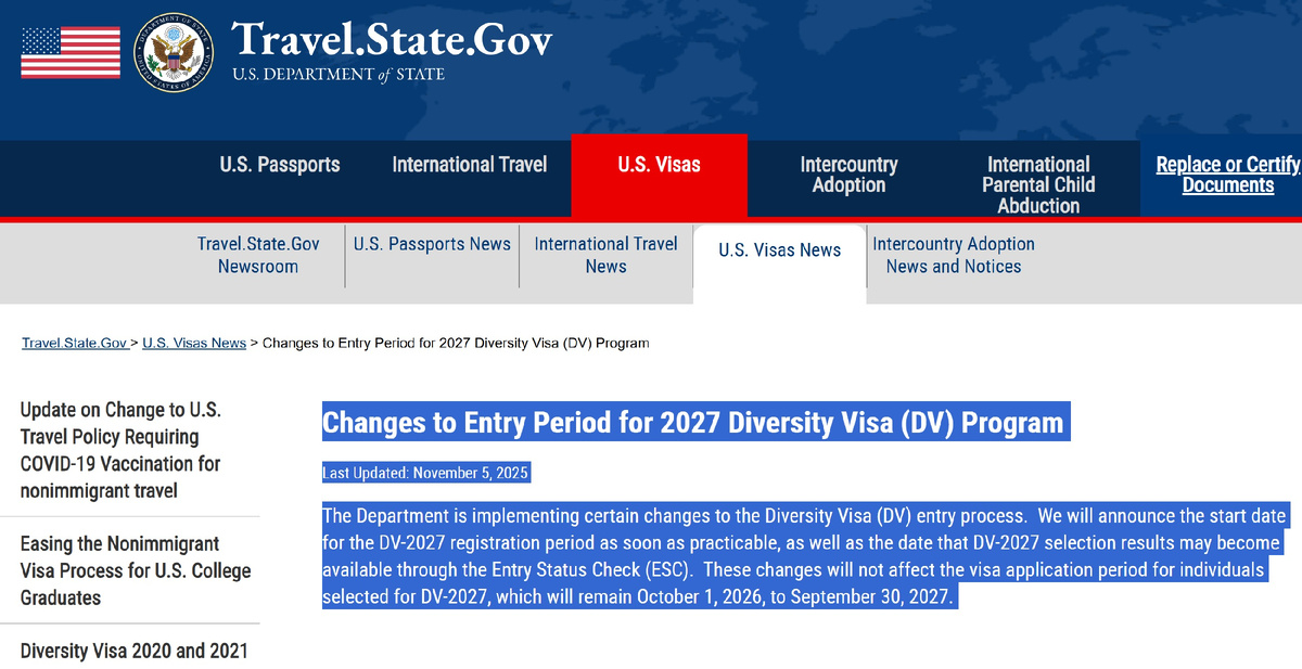 Госдепартамент США наконец опубликовал новости о лотерее Green Card DV-2027, регистрация на которую была неожиданно отложена. В официальном заявлении от 5 ноября 2025 года ведомство подтвердило задержку, но не назвало точных дат начала приёма заявок. Причины задержки и нововведения: