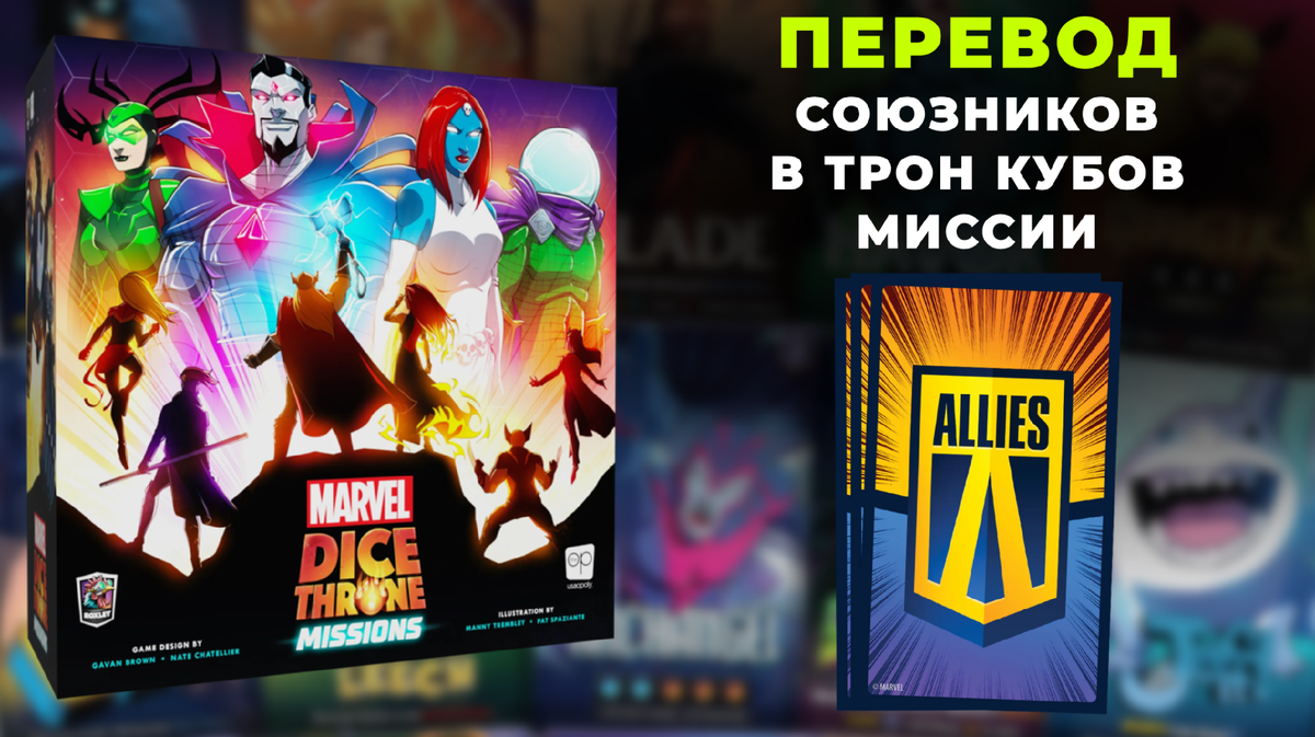 Всего в комплекте Dice Throne Missions идет 25 союзников. Ниже фото каждого союзника и его перевод: