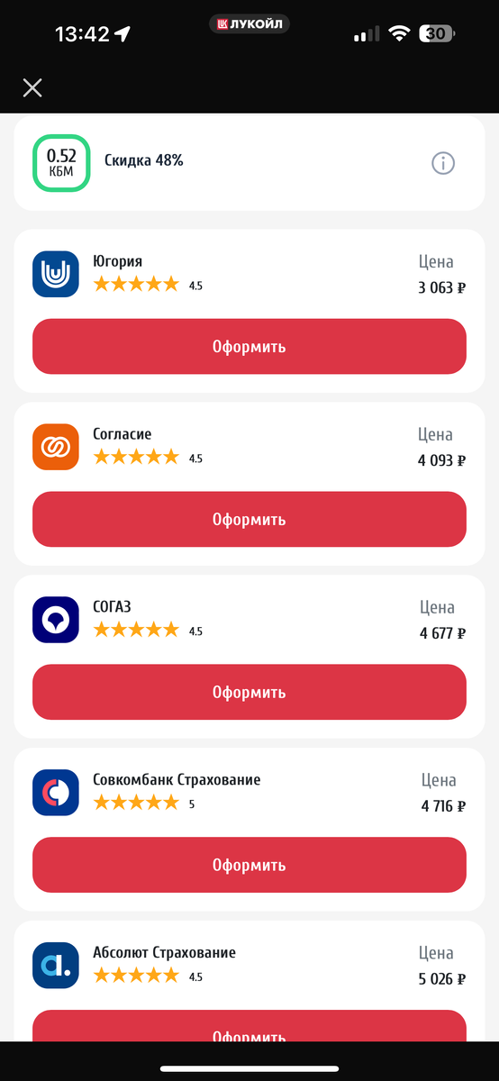 Сегодня я продлила полюс ОСАГО на свою машину. Ну во первых я дотянула оформление до последнего дня, что уже так себе. У меня была страховка в Тбанке и банк естественно любезно предложил мне ее продлить путем единственного нажатия на одну кнопку за 5600р, но не предложили никакого кэшбека. Но раз уж я пытаюсь во всем где только могу искать экономию, то я стала искать другие варианты и как мне казалось нашла. У меня есть карта лояльности Лукойла, на неё начисляются баллы за покупки бензина (всего 1% но хоть что то) и другие покупки в магазинах на заправках, баллами потом можно платить за бензин. Также баллы начисляются за покупки у партнеров, в том числе в моем регионе предложили 6% кэшбека за оформление ОСАГО через приложение Лукойла. Ну я и решила воспользоваться, сначала все шло отлично, заполнила данные, приложение предложило мне варианты Я выбрала понравившийся и дальше попыталась оплатить страховку, но приложение выдало ошибку И так 6 раз подряд. В конце концов я психанула и продл