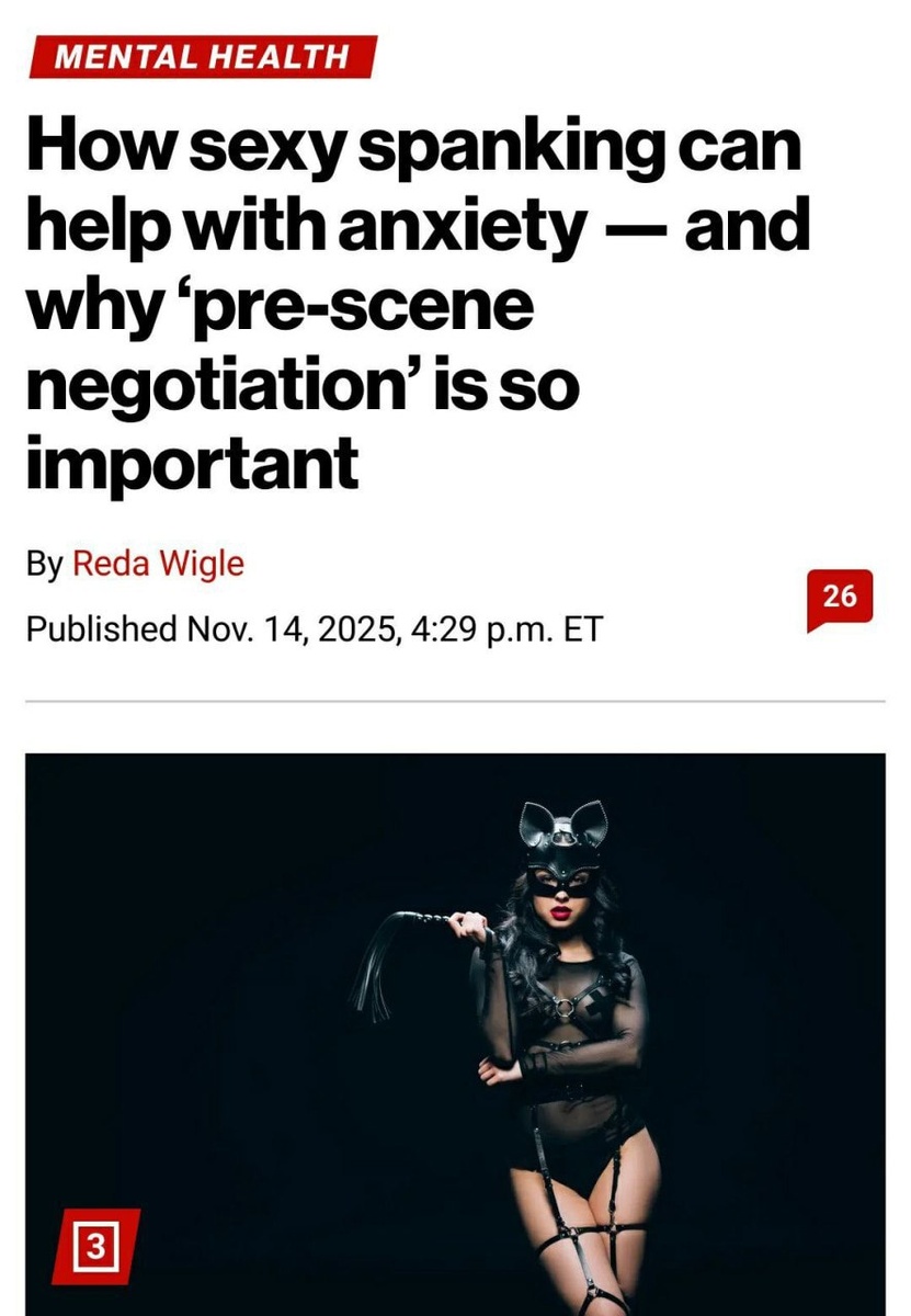 БДСМ убивает стресс и помогает справляться с тревогой — официально. The New York Post пишет, что «игры на воздействие» вроде лёгких шлепков могут реально помочь отпустить тревогу. Всё дело в эндорфинах, которые выбрасываются при контролируемой боли и улучшают настроение. Преподаватели секс-образования подтверждают: дозированная боль в безопасных условиях помогает сосредоточиться на моменте «здесь и сейчас», а не на тревожных мыслях. Главное — заранее обсуждать границы и стоп-слова, чтобы терапия не превратилась в травму. Тогда БДСМ перестаёт быть экстримом ради острых ощущений и превращается в осознанную практику. На йогу? А может лучше... CtrlAltDelights- подписаться